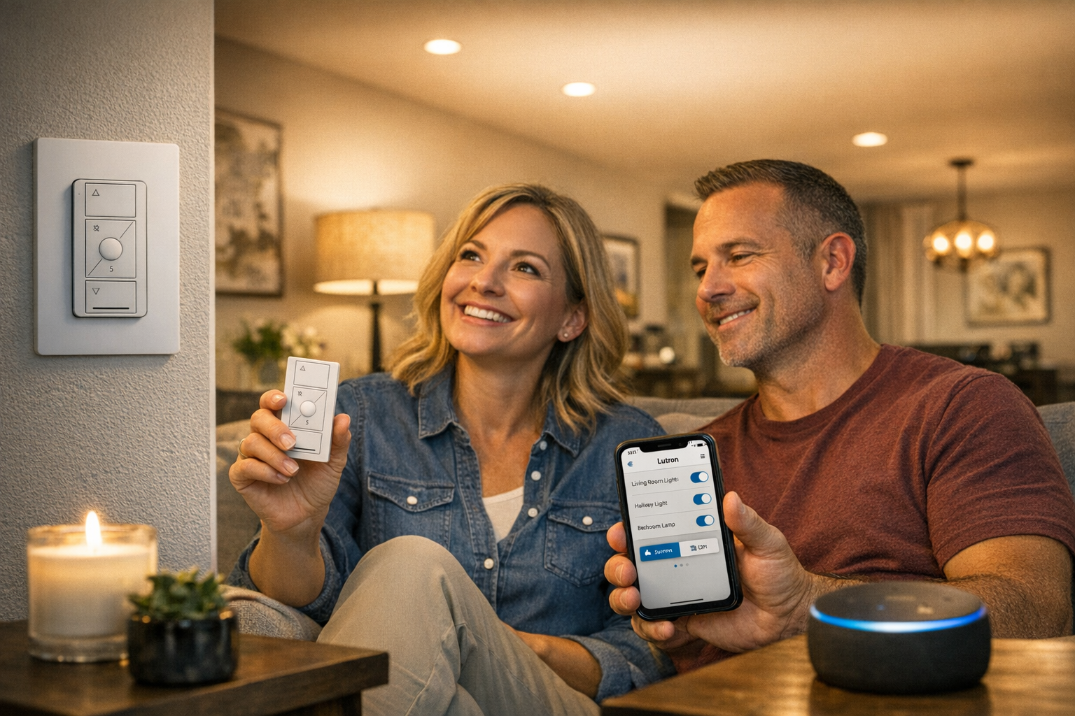 Absolutely. We install the hardware, connect the Smart Hub, set up the Lutron app, create schedules, and configure scenes so everything works perfectly before we leave.